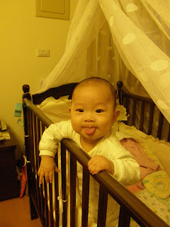 鴨鴨小寶貝繼上次開始在搖籃站起來之後~現在開始很會抓著小床的欄干~小手一邊用力拉~腿則一邊用力蹬讓自己站起來..