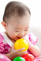 不過呢~鴨鴨寶貝對於一些比較複雜的玩具,她會聚精會神的研究,反而就不會笑了~所以那些照片~就可惜了~沒有選…