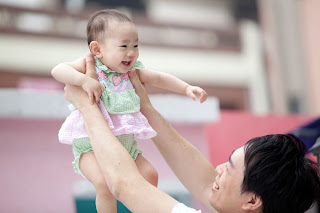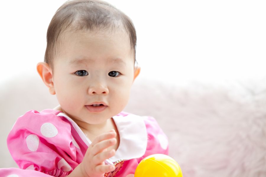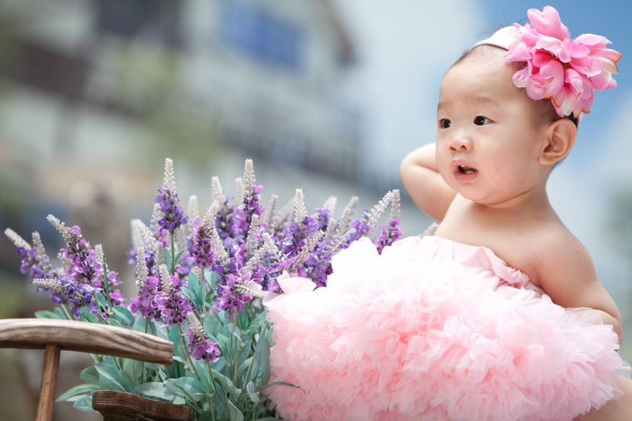 拍攝開始,攝影師先帶我們在室外棚拍攝,他想說通常寶貝們在室外比較容易開心點,不過鴨鴨寶貝可能因為環境陌生,蠻難逗笑的,只有舉高高她才會笑;後來到了室內棚攝影師請助理拿了一些球來,他教我們拿球丟她~很多小朋友喜歡這招,那球丟在身上也並不會受傷或痛的,後來她才慢慢的玩開了~開始有比較豐富的表情。